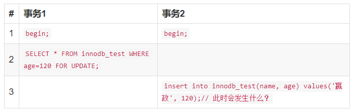 事务A执行如下语句