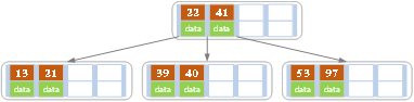 可以看到B树是2-3树的一种扩展,他允许一个节点有多于2个的元素。