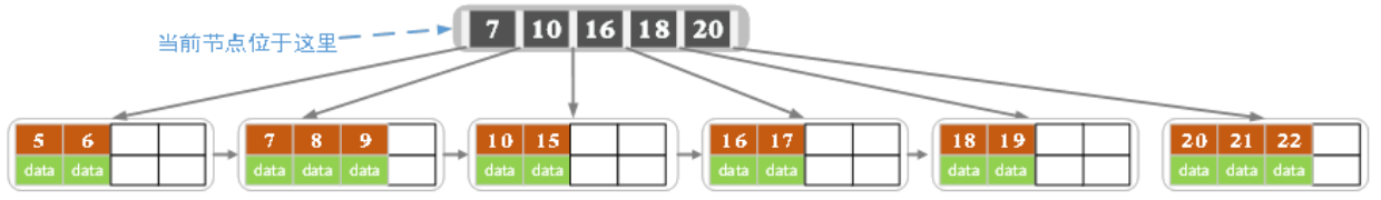 5)每个叶子结点都存有相邻叶子结点的指针,叶子结点本身依关键字的大小自小而大顺序链接。