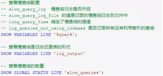 查询慢查询日志信息可以直接通过执行 SQL 命令查看相关变量,常用的 SQL 如下: