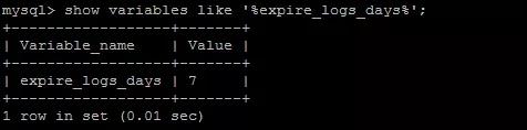 binlog的默认是保持时间由参数expire_logs_days配置,也就是说对于非活动的日志文件,在生成时间超过expire_logs_days配置的天数之后,会被自动删除。