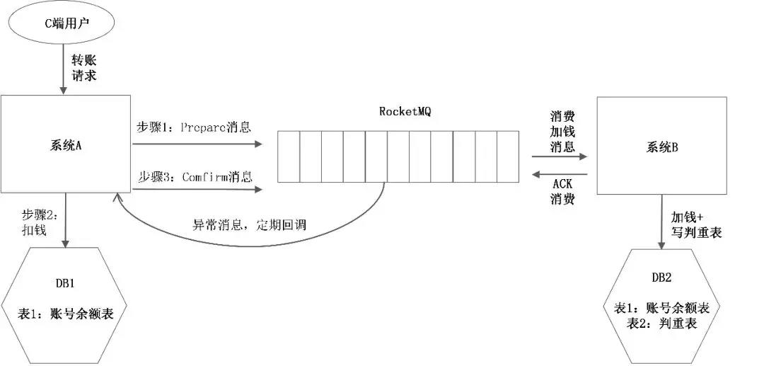 为了能通过消息中间件解决该问题,同时又不和业务耦合,RocketMQ提出了“事务消息”