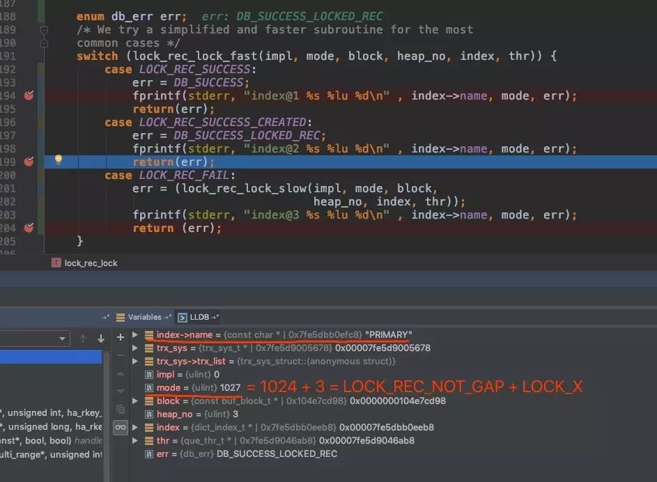 代码在lock0lock.c的static enum db_err lock_rec_lock() 函数中,这个函数会显示,获取锁的过程,以及获取锁成功与否。