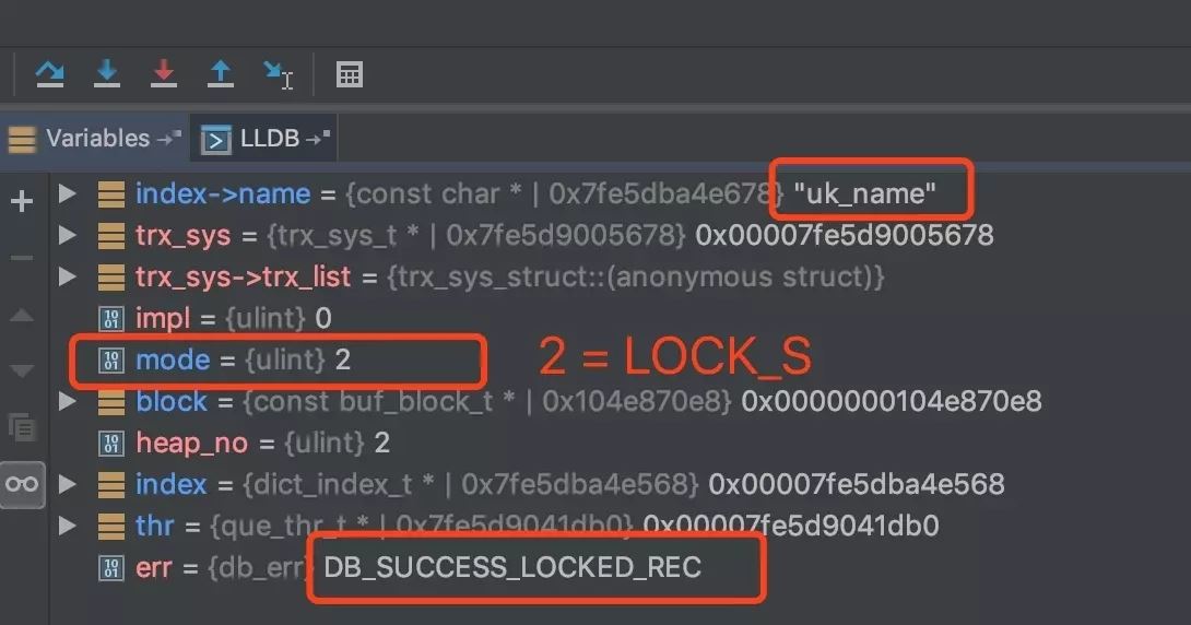 可以看到,对索引 PRIMARY 加锁,mode = 1027,1027是什么意思呢?1027 = LOCK_REC_NOT_GAP + LOCK_X(非 gap 的记录锁且是 X 锁)
