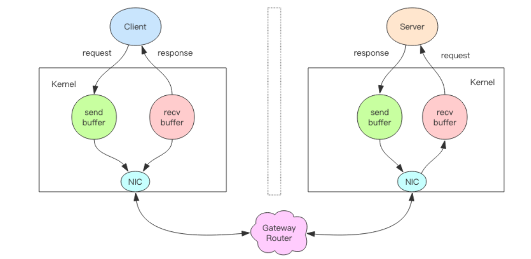 - 客户端操作系统内核将网卡的数据放到内核为套接字分配的接收缓冲 recv buffer