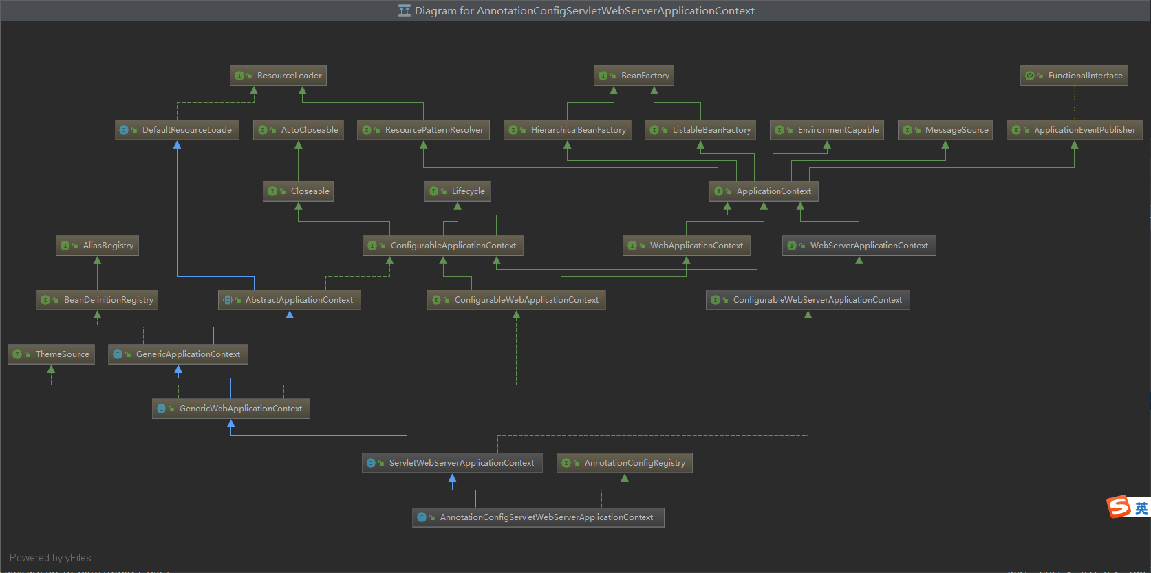 以web工程为例,即其上下文为AnnotationConfigServletWebServerApplicationContext,我们先看一下AnnotationConfigServletWebServerApplicationContext的设计。