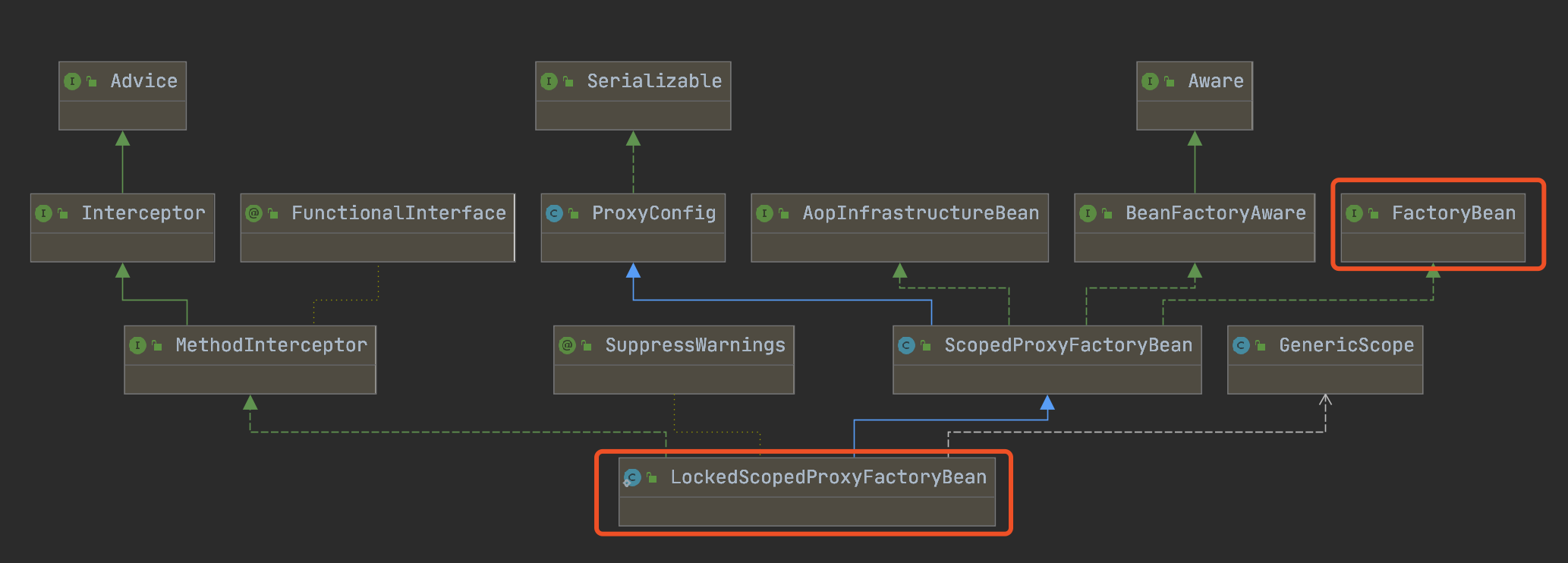 GenericScope将ScopeBean,变为LockedScopedProxyFactoryBean这个类。
